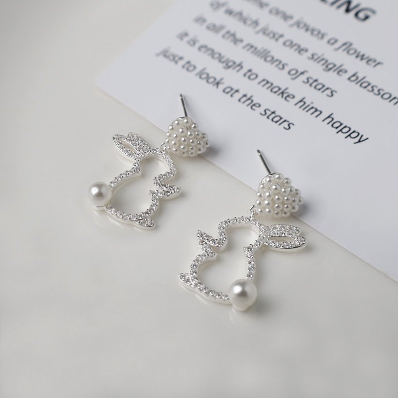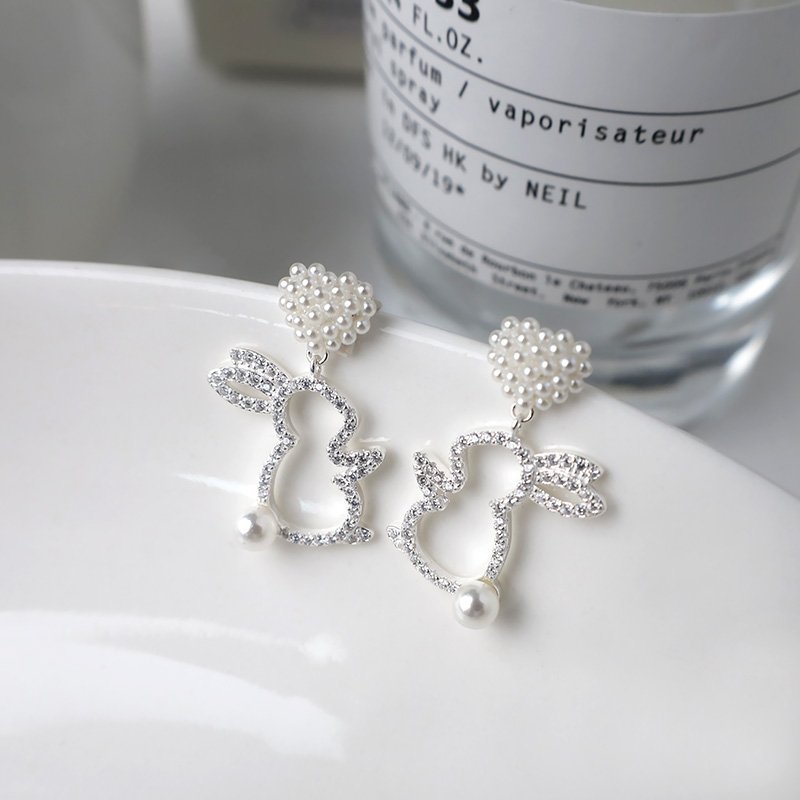 珍珠愛心兔子(耳針)