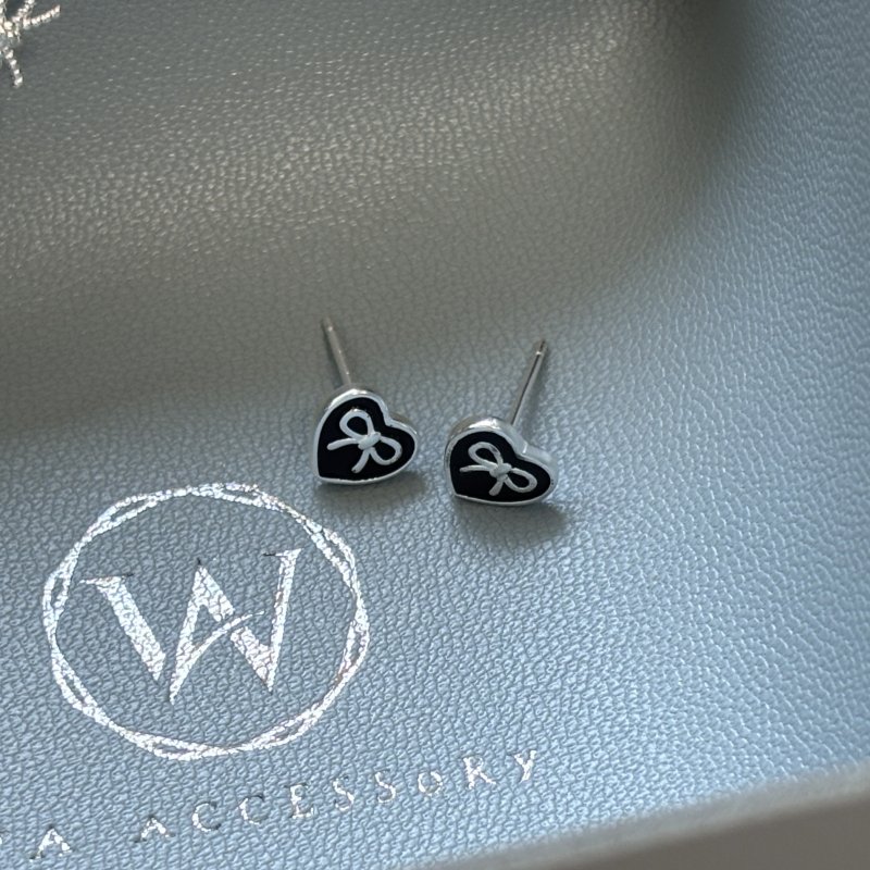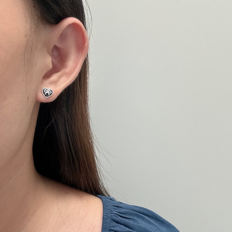 蝴蝶結黑色愛心(耳針)