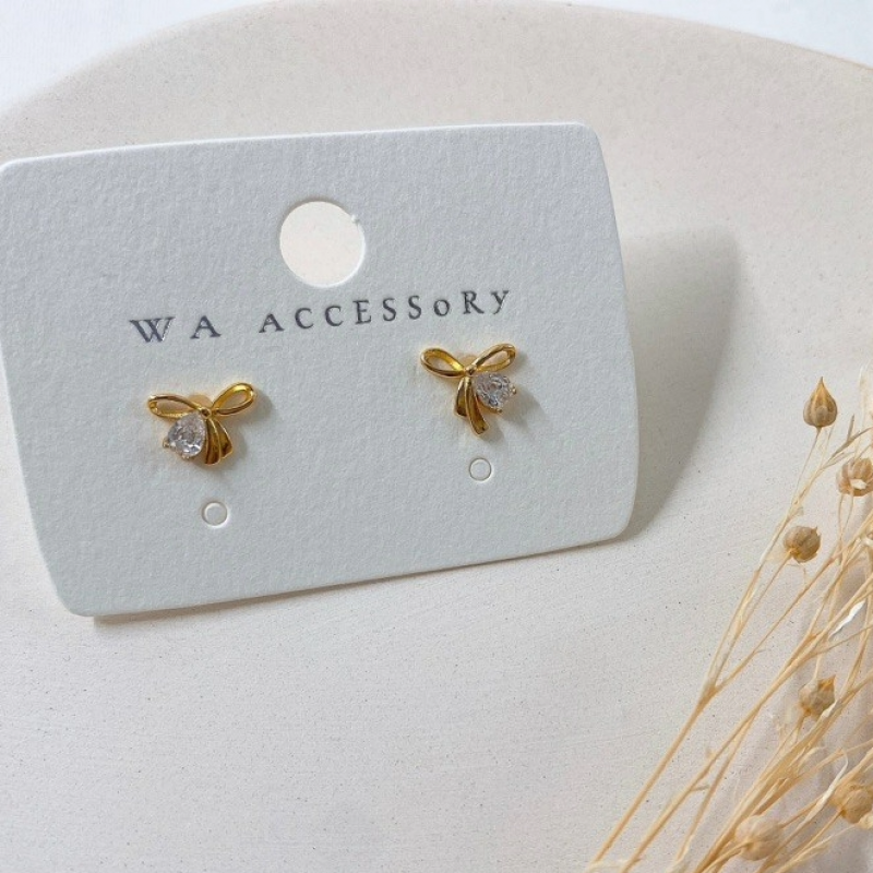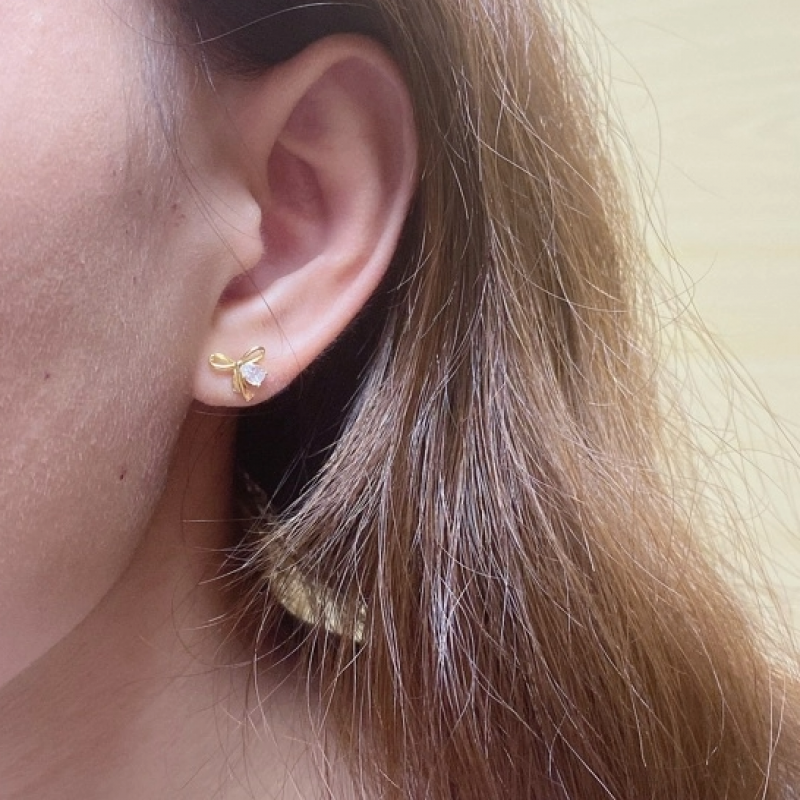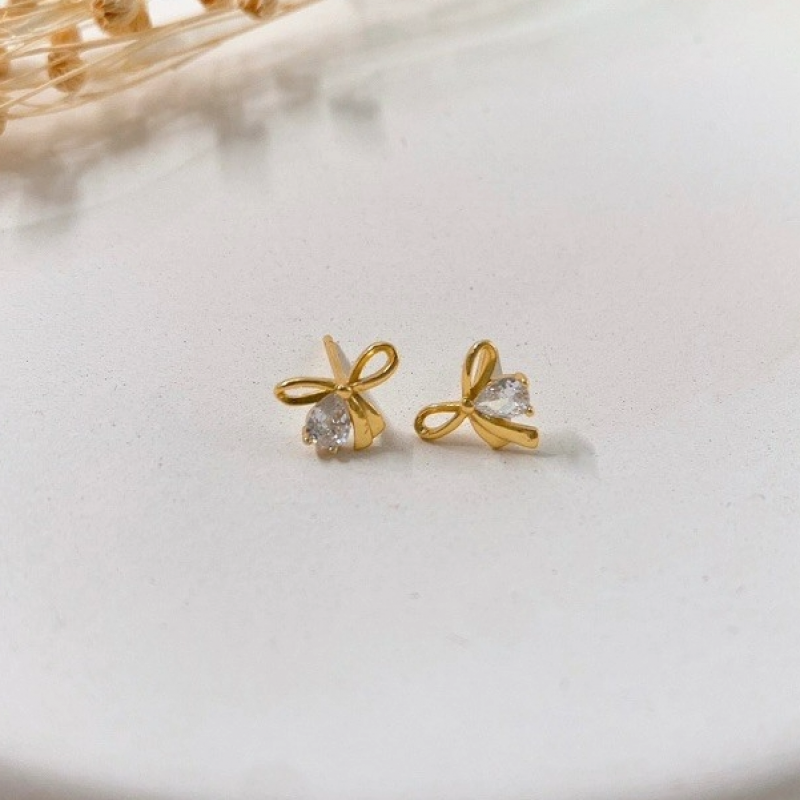 【預計11/04上架】 金色蝴蝶結帶鑽(耳針)