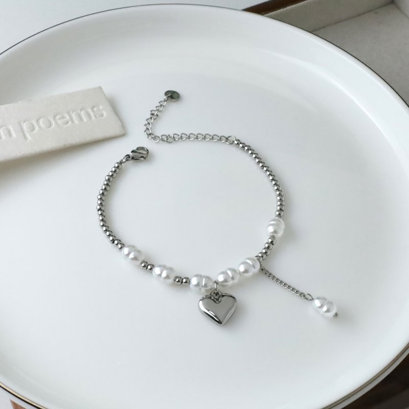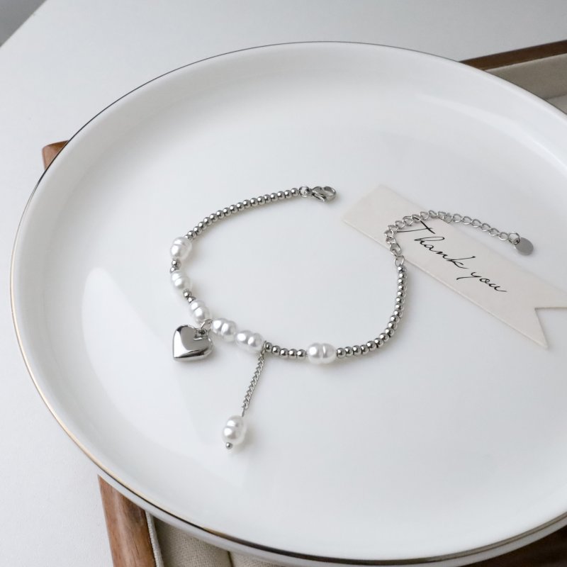 醫療鋼 • 愛心垂吊珍珠手鍊