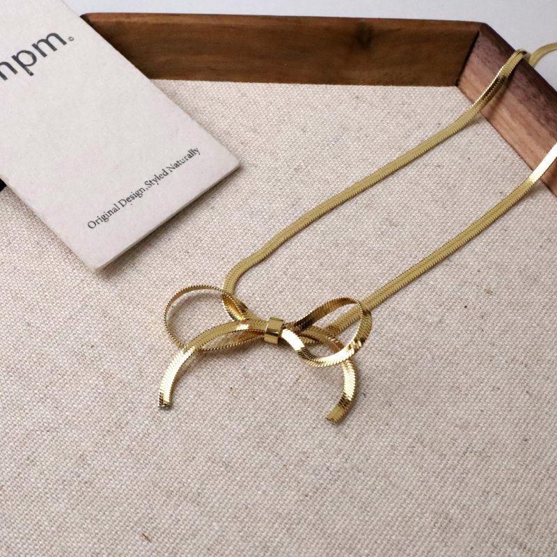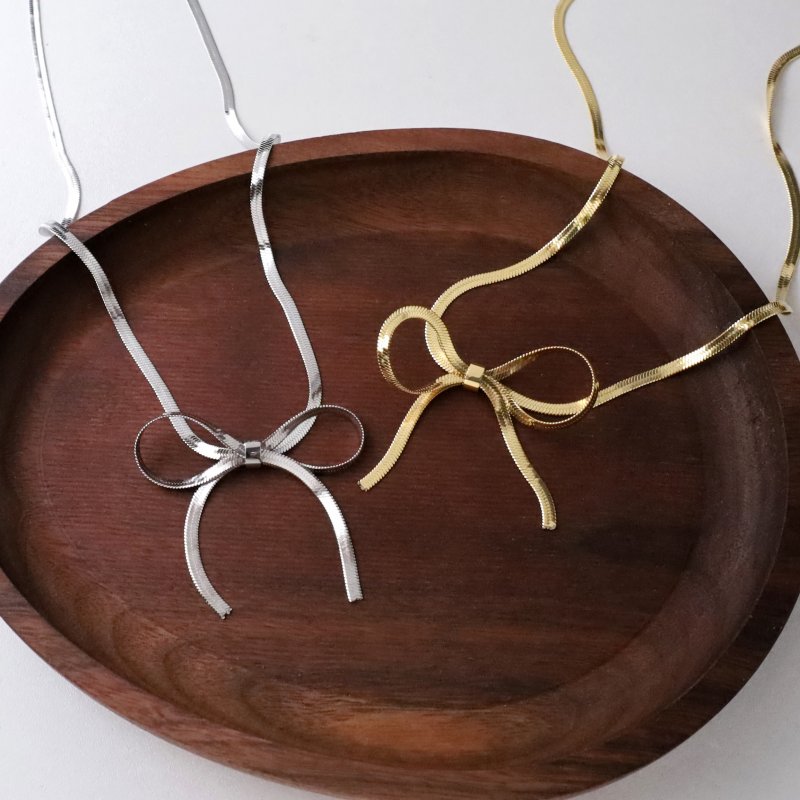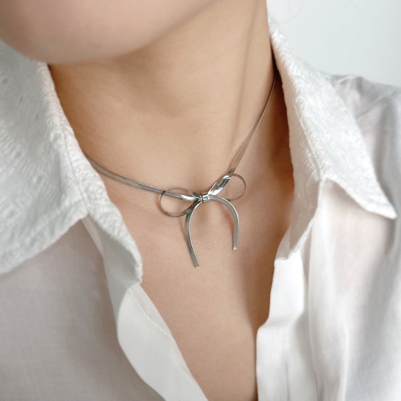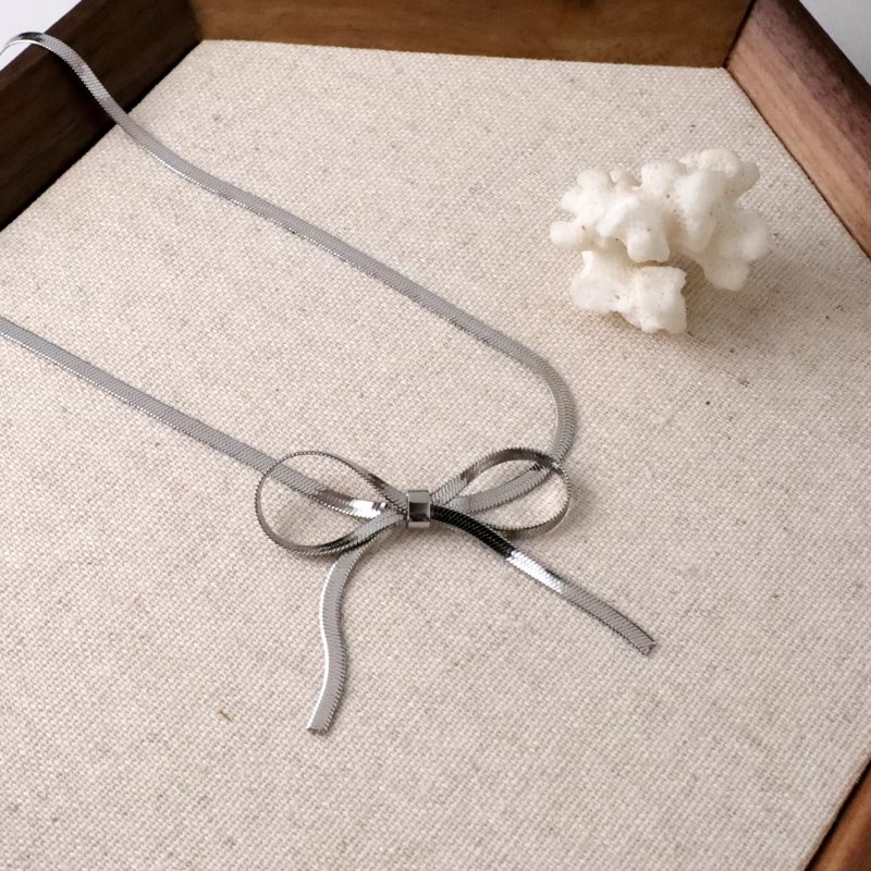 醫療鋼•蝴蝶結扁蛇鍊頸鍊